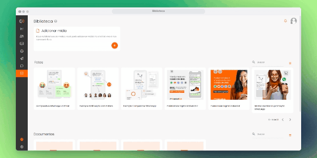 Neste módulo, é possível fazer o upload de arquivos previamente para que fiquem disponíveis para uso imediato no fluxo e chat ao vivo.