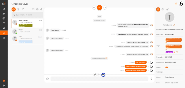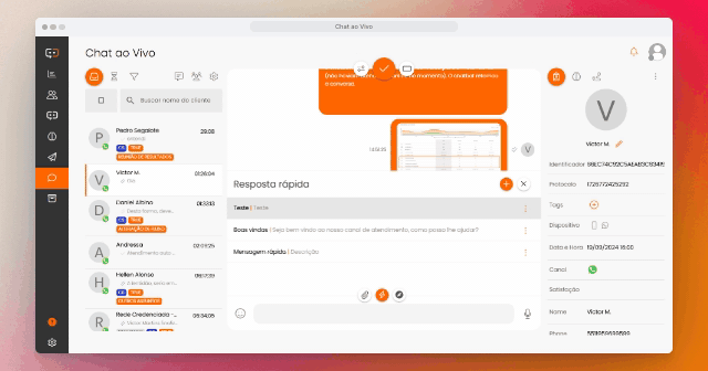 Após assumir a conversa, o atendente pode iniciar o contato com o usuário final. O fluxo de mensagens é livre e ilimitado. A plataforma permite utilizar imagens, documentos e vídeos para interagir com os usuários.