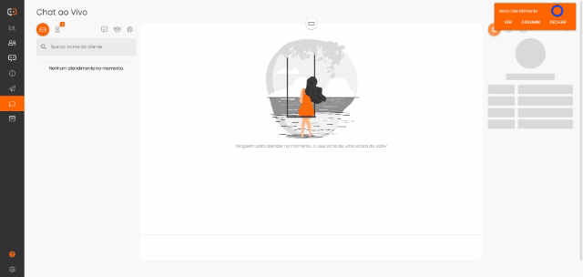 Quando um novo atendimento transbordar para o chat ao vivo, o atendente receberá uma notificação visual e sonora no momento do transbordo.
