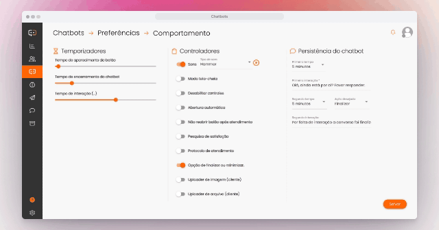 A persistência é uma função obrigatória dos canais WhatsApp e Facebook Messenger, automaticamente habilitada na criação do chatbot.