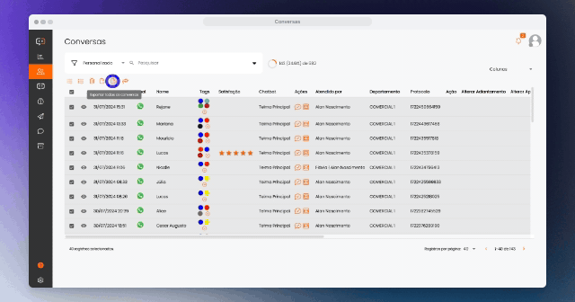 Para exportar relatórios de dados, você deve acessar o módulo Conversas, e utilizar o filtro de data para selecionar o período de pesquisa.