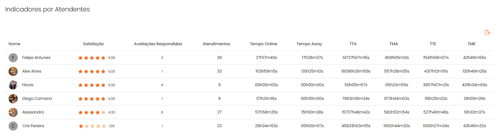 - Atendimentos: total de atendimentos realizados pelo atendente.